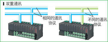 使用2台通讯模块可实现通讯冗余。 在通讯冗余系统中,用户甚至可以使用不同协议的两个通讯模块,将信号同时传送给两种不同厂牌的PLC系统。 |