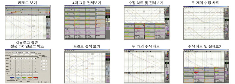최대 속도 128 개 채널당 500 ms로 데이터가 연결되고, 배열되며 저장됩니다. 히스토리 트렌드를 다시 불러오기해서 편집하고 하드 카피 출력용으로 사용하거나 추가 분석용 스프레드시트로 내보내는 데 사용될 수 있습니다.