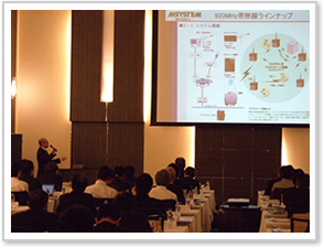 発表 その1 ●スマートネットワーク向け無線マルチホップ通信技術について 沖電気工業株式会社 島田 貴光 様 無線通信技術の歴史と種類、「くにまる」に搭載している920MHz帯無線モジュールの特長などをご説明していただきました。