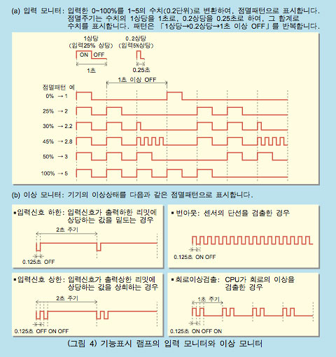 또한, 번아웃이나 입력 상하한 리밋의 상태에 대해서도 각각의 점멸패턴이 있습니다 (그림4 (b) ).