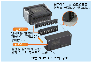 이 번에 소개해드린 47시리즈는 제어판넬이나 장치의 공간 절약화 또는 배선작업의 인력절감화를 목적으로 한 사용하기 편리함을 추구한 제품입니다.
