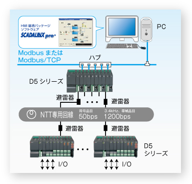 複数の子局をパソコンで集中監視、データ収集します。 |