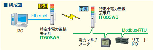 ●920MHz帯の特定小電力無線局を実装しています。 ●接点入力やModbus/TCPにて、表示ランプ点灯/ 点滅やブザー音の出力ができます。