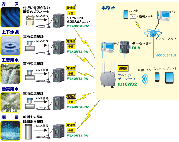 無線機器は、通信を無線化するため配線工事が不要であり、工事費を大幅に削減できます。ただし、外部から電源を供給するタイプの機器は電源配線が必要です。このたび発売した積算パルス入力1点 電池式くにまるでは、電源配線も通信配線も不要なワイヤレス化を実現しました。電源が取れないため諦めていた電池式の流量計や周囲に電源がないガスメータのパルス信号を積算して伝送する電池式くにまるなら容易に監視・記録できます。スリープ動作で低消費電力駆動を実現しました。
