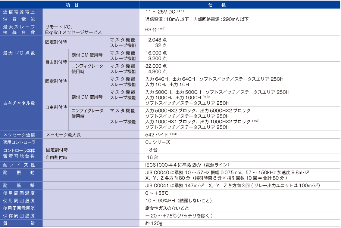 (*2)マスタユニットに1ノード使用するため、スレーブは63台の接続になります。