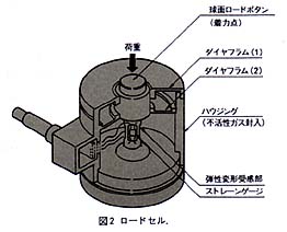ロードセルは、荷重を受けて弾性変形する受感部にストレーンゲージを接着して、その微小な変形を電気信号として取り出すようにしたものです(ストレーンゲージは金属やある種の半導体の電気抵抗が歪量に比例して変化する性質を利用したセンサです)。