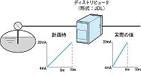 ホットライン日記 東京/0120-18-7270 大阪/0120-18-6321 Q:2台の加圧タンクの圧力をコントロールしています。加圧タンクには圧力発信器が設置されてて、それぞれDC4~20mAの信号を出力します。今、両方の発信器からの信号をつきあわせて、実量で±10%以上の差が生じたときに警報を出したいと考えています。2つの圧力発信器の実量はそれぞれ、0~20kgf/cm2と0~25kgf/cm2ですが、どのようにしたら良いでしょうか。 A:2つの直流信号を比較し、偏差に応じて警報を出す偏差アラームセッタ(形式:AYDV)を使用します。ご質問のケースでは、2つの圧力発信器の実量信号が相違するため、あらかじめ比率変換器(形式:REBS)を用いて信号合わせを行います。たとえば、0~25kgf/cm2の信号をX0=KXi+B(ただし、Xi:0-25kgf/cm2の信号、K:レシオ、B:バイアス)の式でK=0.8、B=0にすると、実量信号を合わせることができます。この比率変換器と偏差アラームセッタを図3に示すように組み合わせることにより目的を達成できます。 Q:タンクレベルの計測でリニア出力の2線式差圧伝送器を使用することを考えています。打ち合わせの時点では0~10mに対してDC4~20mAを出力し、レベル指示調節計に取り込む予定ですが、システムの状況により0~6mになる可能性もあります。現場において変換器側で調整できるような製品はありますか。 A:リニアライズ付きのディストリビュータ(形式:JDL)を使用すれば現場で変更できます。JDLは2線式発信器用の電源DC24Vとリニアライズ機能(注文時に、折れ線リニアライズと指定)を持っていますから、変更が起きた場合でも現場で対処可能です。なお、タンクのレベルと容積の関係がリニアでない場合(例:球形タンク)、容積信号をリニアライズするのにも適用可能です。ただし、変更するには、ハンディコンソールタイプのプログラミングユニット(形式:PU-2□)を使ってキーイン設定をする必要があります。 |