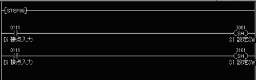 ワンループコントローラ(形式:ABA)の前面表示はフィールド端子(形式F06のGroup01)のItem30(表示するループのグループ番号)で決まります。したがって、その内容を変更することにより表示ループの切換えができます。ビルダーソフト(形式:SFEW)を使えば、2(G02)もしくは3(G03)を設定することにより切換える設定が可能です。 たとえば、接点入力端子に外部スイッチを接続し、シーケンスのワンショットコイルで演算ブロックのパラメータ設定ブロックの設定指令スイッチを切換えます。パラメータ設定ブロックは2個必要です。1つのパラメータ設定ブロックの内部設定パラメータを2、もう1つのパラメータ設定ブロックの内部設定パラメータを3にし接点入力の変化により、シーケンスのワンショットコイルで切換えることができます。 Group30、31にパラメータ設定ブロックを登録した場合の例を図1に示します。