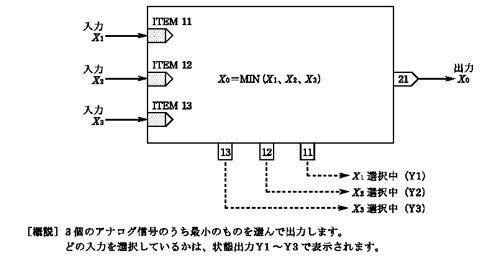 MsysNetの計器ブロックを使用して、アナログ2量の信号の値が小さい方を自動的に選択して出力したいのですが、計器ブロックは何を使用すれば良いでしょうか?