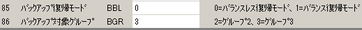 Gr04 Item85に「バックアップ復帰モード」の項目が追加されて、「0=バランスレス復帰モード」と「1=バランス復帰モード」を選択できるようになりました。 これは、調節計ブロックのMVがフィールド端子Mv2と直接接続しているかどうかで使い分けできるようになっています。
