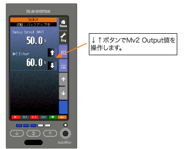 MVの出力値は、エンジニアリング用画面のバックアップ画面で操作します。
