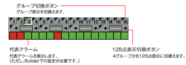 デジタル監視画面 発生、復旧や機動、停止、故障などの監視に適しています。