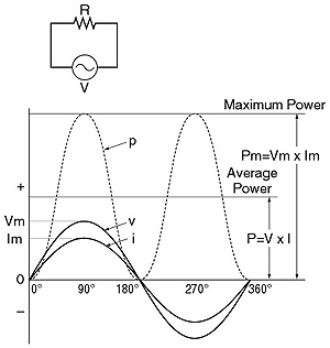 When voltage V and current I are both sinusoidal functions of time, a plot