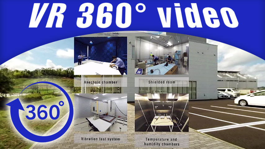 This video introduces the Kyoto Techno Center's 1. Anechoic chamber, 2. Shielded room, 3. Vibration test system, and 4. Temperature and humidity chambers and the Kyoto Research Center's 1. Air shower room and 2. Chip mounter for high-mix, low-volume production.